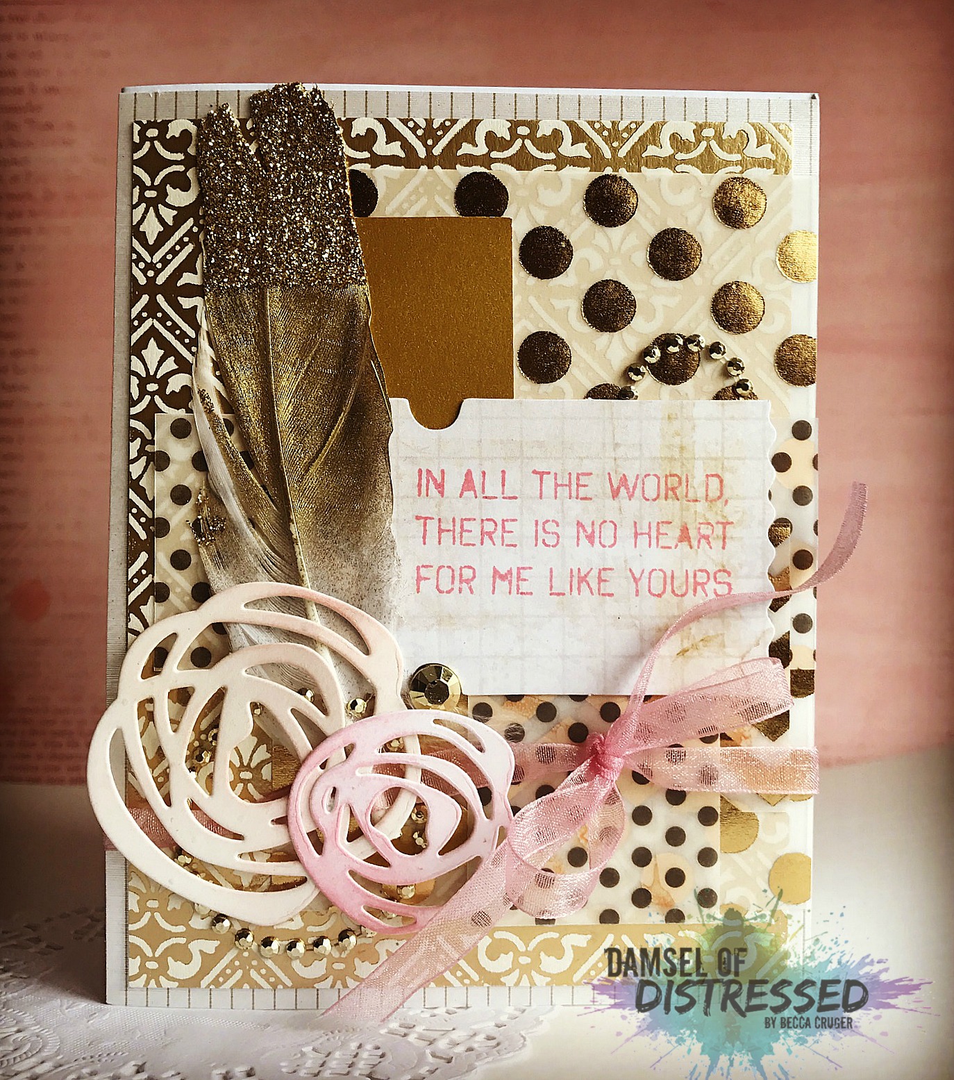 Collage card, I wanted to bring in rich, luxe gold tones, dots, a splash of