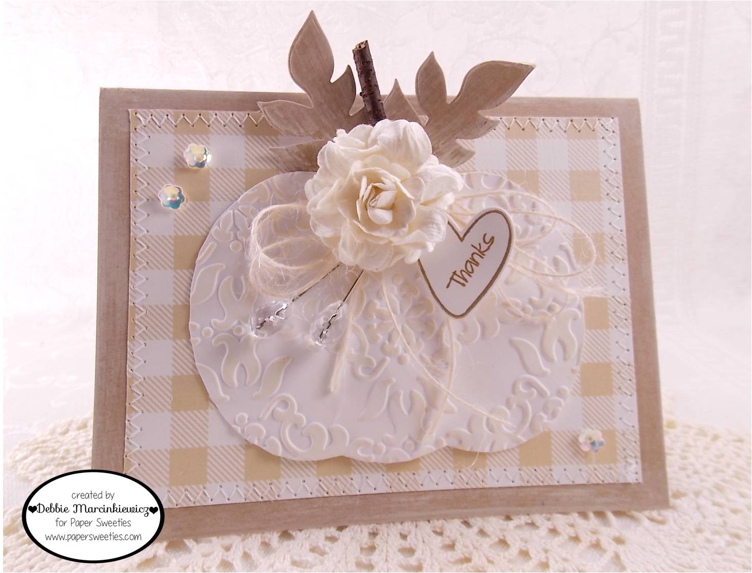 I was inspired to create a white pumpkin with a shabby background.